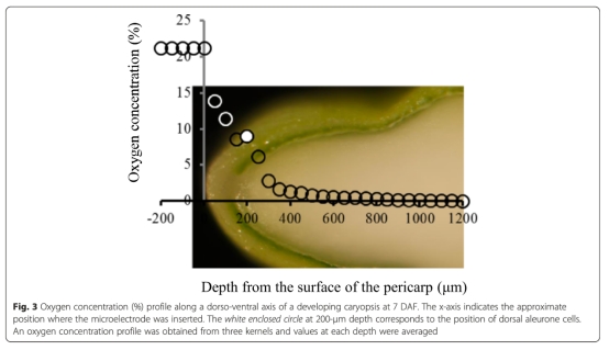 2 氧濃度數(shù)據(jù):使用Clark型氧微電極測量胚乳背腹軸的氧濃度剖面,顯示從糊粉層到中心淀粉胚乳氧濃度從8%降至0。研究意義是評估胚乳不同區(qū)域的氧可用性,關(guān)聯(lián)有氧呼吸潛力,解釋代謝途徑差異(如糊粉層進(jìn)行有氧呼吸,淀粉胚乳進(jìn)行無氧呼吸)。數(shù)據(jù)來自圖3。