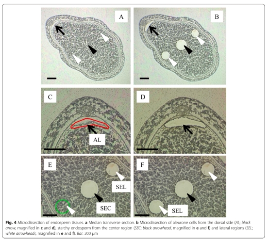Laser microdissection-based gene expression analysis in the aleurone layer and starchy endosperm of developing rice caryopses in the early storage phase