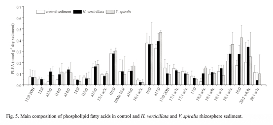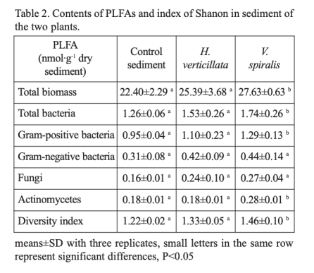 摘要闡述了根徑向氧損失(ROL)是保護(hù)植物免受土壤厭氧產(chǎn)物影響的重要過程。研究旨在測(cè)試兩種沉水植物(黑藻和苦草)的根ROL對(duì)根際氧剖面和根際微區(qū)的影響。使用磷脂脂肪酸(PLFA)分析沉積物微生物群落。結(jié)果顯示兩種植物在ROL上存在顯著差異,影響根際物理化學(xué)參數(shù)和微生物群落。苦草的根際總生物量、細(xì)菌、革蘭氏陽(yáng)性菌、放線菌和微生物多樣性顯著高于黑藻。研究強(qiáng)調(diào)根ROL是影響根際微區(qū)微生物群落的關(guān)鍵參數(shù)。