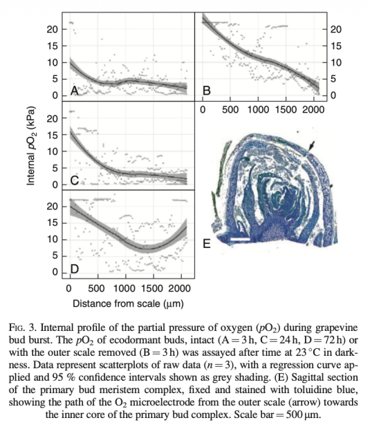 Spatio-temporal relief from hypoxia and production of reactive oxygen species during bud burst in grapevine(Vitis vinifera)