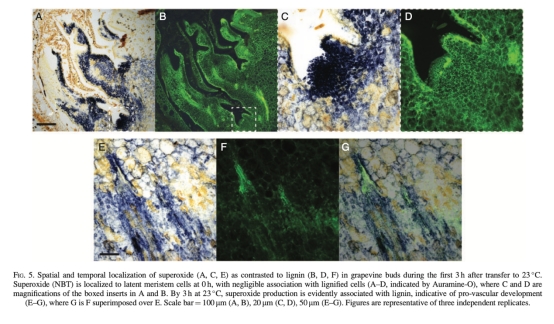 結論是葡萄芽爆發期間存在時空控制的氧環境,從缺氧狀態逐步緩解,并伴隨ROS在維管組織中的積累,表明氧和氧化還原信號在發育過渡中起關鍵作用。