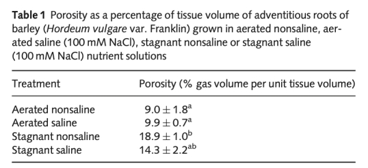 2. 根孔隙度:數(shù)據(jù)來(lái)自表1,顯示根中氣體體積百分比。研究意義:停滯處理增加根孔隙度(如停滯非鹽達(dá)19%),表明植物通過(guò)形成aerenchyma增強(qiáng)內(nèi)部O2擴(kuò)散,適應(yīng)缺氧環(huán)境,但鹽度可能抑制此響應(yīng)。