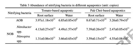3 微生物豐度數據:來自表3,通過qPCR測量氨氧化細菌和亞硝酸鹽氧化細菌的基因拷貝數。研究意義:番茄基系統硝化細菌豐度更高,直接關聯到其更高氮利用效率,為選育高效植物提供微生物學基礎。
