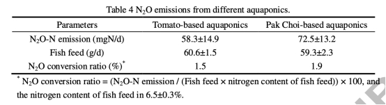 4 N2O排放數據:來自圖3和表4,使用Unisense電極測量溶解N2O濃度并計算排放率。研究意義:系統排放N2O,確認魚菜共生是溫室氣體源,強調需改進設計以減少排放。