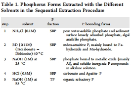 磷的形態與含量數據:通過磷連續提取法獲得。該數據用于追蹤沉積物中不同化學相(如與鐵、鋁、鈣結合的磷以及有機磷)中磷的遷移與轉化。其研究意義在于直接揭示了在缺氧和好氧條件下,磷具體從哪些“儲存庫”中釋放或被固定。例如,數據表明好氧階段釋放的磷主要來自對pH敏感的鋁氧化物結合態,而非傳統認為的對氧化還原敏感的鐵氧化物結合態。這些數據主要來自文中“表1”(Table 1)和圖2(Figure 2)。表1詳細列出了連續提取的步驟、所用溶劑及對應的磷結合形態;圖2則直觀展示了在初始、缺氧后和好氧后三個階段,各磷組分(如BD可提取態、NaOH可提取態、HCl可提取態等)含量的變化。