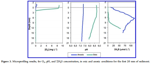 微剖面技術:使用微傳感器在沉積物-水界面垂直方向上高分辨率測量pH、溶解氧(O2)和總硫化氫(ΣH2S)的濃度分布。
