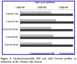 微生物群落數據:通過qPCR對沉積物中的總細菌和地桿菌科(Geobacteraceae)細菌進行了定量。其研究意義在于確認了沉積物中存在具有電活性(能夠進行遠距離電子傳遞)潛力的微生物類群,為觀察到的電化學耦合過程提供了可能的生物執行者。數據顯示地桿菌科約占總細菌的1.4%。這些數據來源于圖5(Figure 5),該圖展示了細菌在沉積物表層10厘米的分布情況。