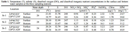 研究區域與點位:在韓國南海的南海岸海域選擇了三個站點(St-1, St-2, St-3),該區域水淺(平均<30米),受陸源輸入和潮汐影響。