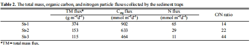顆粒物垂直通量數據:通過沉積物捕獲器獲得的總質量、有機碳和氮的垂直沉降通量。其研究意義在于量化了從水層向沉積物表面的有機物輸入,是計算沉積有機碳收支的關鍵輸入項。數據顯示通量較高,可能與季風季節的淡水輸入有關。這些數據展示在表2。