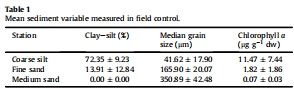 沉積物基本特性數據:包括粘土-粉砂含量、中值粒徑、葉綠素a濃度。其研究意義在于定量表征了三個站點的沉積物環境差異,這是解釋線蟲本底群落差異的物理和食物基礎。數據顯示粗粉砂站有機質(葉綠素a)最高,中沙站最低。這些數據匯總于文中的表1。