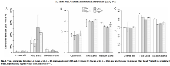 Effect of short-term hypoxia on marine nematode community structure and vertical distribution pattern in three different sediment types of the North Sea