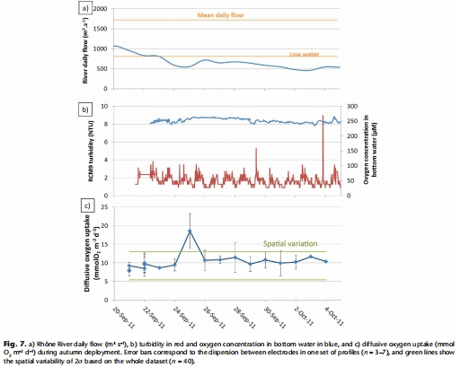 揭示了耗氧量的時空變異模式:在羅訥河三角洲,沉積物耗氧量存在分米尺度的空間異質(zhì)性,并可能由局部地形和有機(jī)物沉積模式導(dǎo)致。在穩(wěn)定的水文氣象條件下,耗氧量保持穩(wěn)定。
