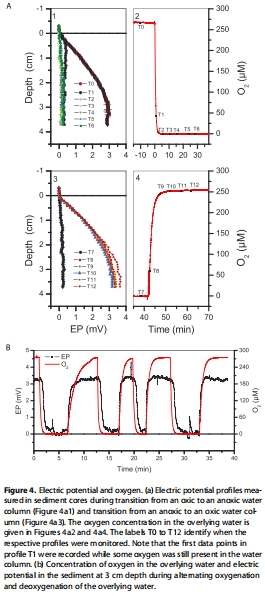 電場來源解析:通過快速切換上覆水的氧氣條件(有氧/缺氧),并監測電位剖面的即時變化,從而將從電流直接產生的電場與由離子擴散等慢過程產生的背景電場分離開來。