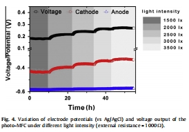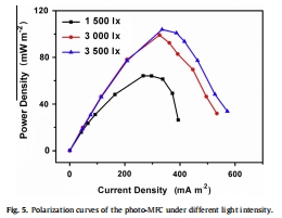 光的強度影響以橋灣藻科 A8為陰極微生物的光微生物燃料電池的性能