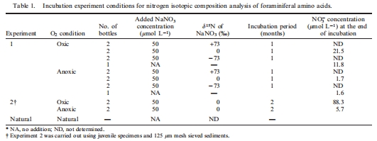 提出代謝模型:在缺氧條件下,有孔蟲吸收硝酸鹽儲存于液泡;有孔蟲和/或內共生體利用該池進行反硝化,導致池中硝酸鹽富集15N;內共生體(可能是自養型)利用此富集15N的硝酸鹽合成氨基酸。在有氧條件下,此途徑不啟動。