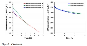 溶解氧消耗曲線:連續記錄了實驗過程中溶解氧濃度隨時間的變化(圖2)。意義:直接、可視化地展示了各物種的耗氧過程。數據顯示,在短時間培養內溶解氧濃度顯著下降,且下降趨勢基本呈線性,證明了測量結果的有效性,并可用于計算呼吸速率。