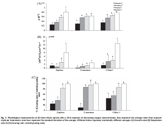 Respiration, growth and grazing rates of three ciliate species in hypoxic conditions