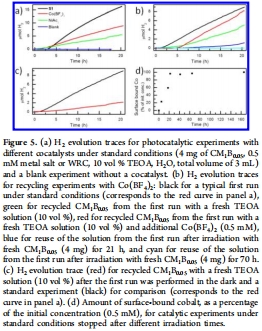 實現鉑的部分替代:鈷、鎳的鹽及其某些配合物可作為助催化劑,在CM1B0.05上實現可見光驅動產氫。其中配合物S1的初始速率最高,Co(BF?)?次之,但誘導期更短。