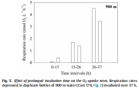 長時(shí)間培養(yǎng)與有機(jī)添加的影響:數(shù)據(jù)顯示,培養(yǎng)時(shí)間超過20小時(shí)后,測得的呼吸速率會(huì)顯著增加(可達(dá)初始值的10倍)。添加酪蛋白氨基酸在最初20小時(shí)內(nèi)未顯著刺激呼吸,但在更長時(shí)間(>20小時(shí))后導(dǎo)致呼吸速率大幅上升。意義:指出了傳統(tǒng)長時(shí)間瓶培養(yǎng)法可能因“瓶效應(yīng)”而高估原位呼吸速率,強(qiáng)調(diào)了短時(shí)間(<20小時(shí))培養(yǎng)對(duì)準(zhǔn)確測量貧營養(yǎng)水體低呼吸速率的重要性。同時(shí)表明,低水平有機(jī)污染對(duì)短期測量影響有限。數(shù)據(jù)來自圖5(時(shí)間效應(yīng))和圖6(有機(jī)添加效應(yīng))。