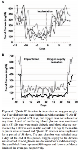 裝置設計與制備:開發了兩種原型裝置(β-Air I 和 β-Air II),核心包括裝載胰島的藻酸鹽凝膠模塊、可補充氧氣的氣體腔室、以及將兩者與宿主組織隔開的專用膜(氣體滲透膜和免疫隔離膜)。
