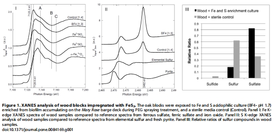 從“瑪麗玫瑰”號PEG生物膜中富集的微生物能夠氧化考古木材模擬物中的硫化鐵,產生硫酸鹽,證實了微生物在考古木材酸蝕問題中的貢獻。
