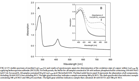 銅的氧化態(tài):紫外-可見光譜結(jié)合特異性Cu(I)螯合劑BCS的測定表明,純化的活性酶中含有Cu(II)。意義:明確了活性中心金屬的氧化態(tài),為理解催化機制提供了基礎。數(shù)據(jù)來自圖6及相關(guān)分析。