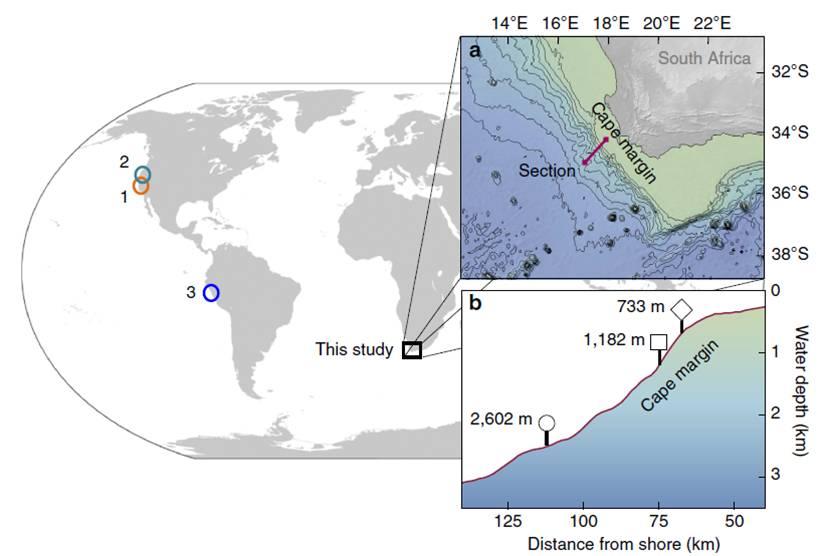 研究表明從南非的半干旱海洋邊緣被動構造中孔隙水的獲取的鐵同位素數據說明了與主動結構和無氧大陸邊緣區域中的溶解鐵相比,該區域中的溶解鐵的體積更小,同位素更重。這些數據提供了來自大陸邊緣存在的原位非還原性鐵溶解于的證據,并進一步表明地質和水文氣候因素可能影響進入海洋鐵的數量和鐵的同位素組成。