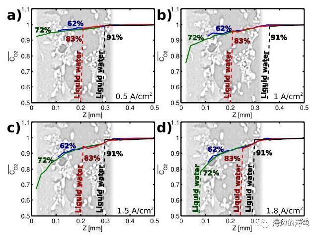 氧微電極測試聚合物燃料電池中電解質擴散層在不同條件下的氧的濃度百分比