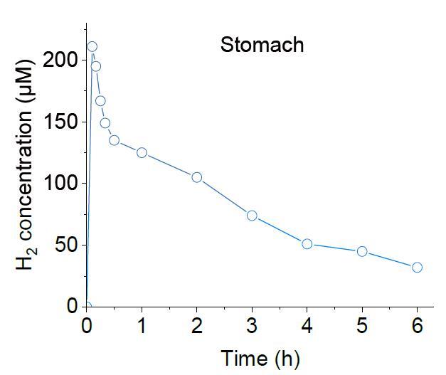 圖4、應用unisense微剖面分析系統測試了老鼠口服鋅鐵(200 mg/kg)后胃壁H2濃度的體內監測。