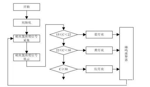 圖2硫化氫監(jiān)測(cè)系統(tǒng)軟件流程圖