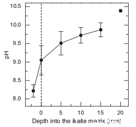 格陵蘭Ikka峽灣石灰巖柱的最上部區域寄存著活躍的微藻和藍細菌群落,這些生物嵌入在外生聚合物中,并分層在多孔石灰巖矩陣的最外層約2厘米處的黃色和綠色區域中。四通道水下微傳感器測量系統(unisesne MP4),在石灰巖晶體矩陣最外層的2厘米內存在明顯的O2和pH梯度。pH從海水的pH 8.2增加到柱體表面的約pH 9,然后在距表面1-2厘米的位置進一步增加至約pH 10,這種變化不受環境輻射水平的影響。在石灰巖中的O2濃度測量顯示,盡管石灰巖晶體和光合生物嵌入的多孔EPS表現出氣泡積累,但從缺氧到高氧條件的動態明顯。變化的葉綠素熒光測量證實,石灰巖的色素層中存在活躍的光合作用,這些層顯示出低光適應性和高量子產率。因,密集的色素層光合生物和觀察到的化學動態表明,在石灰巖晶體矩陣內部存在光合內生生物膜,這可能影響石灰巖沉積和鈣華柱中的其他生物地球化學過程。