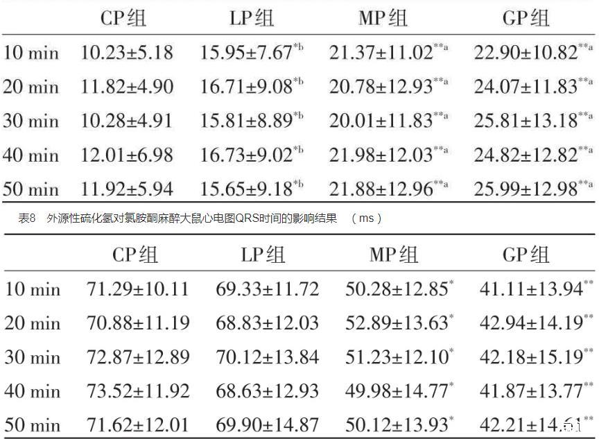 表9外源性硫化氫對(duì)氯胺酮麻醉大鼠心電圖Q-T間期的影響結(jié)果(ms)