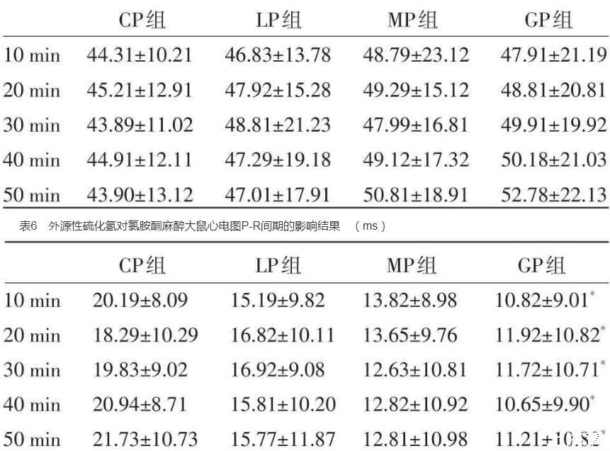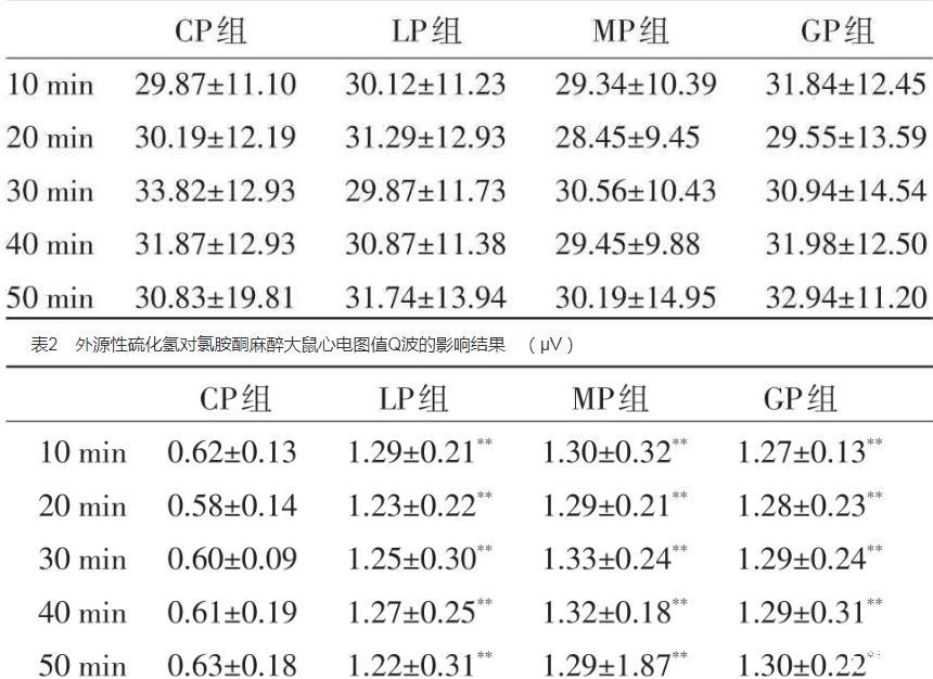 表1外源性硫化氫對(duì)氯胺酮麻醉大鼠心電圖值P波的影響結(jié)果(μV)