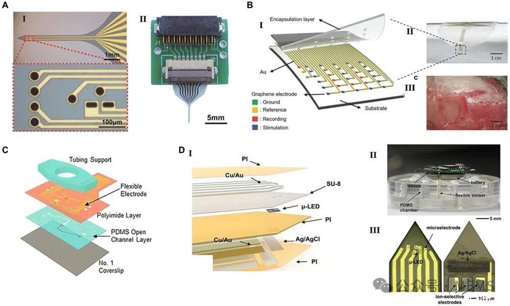 HDMEA可分為剛性和柔性兩種類型,具體取決于用于制造微電極的基板材料。目前,最先進(jìn)的HDMEA是采用硅制造技術(shù)的剛性HDMEA。然而,剛性HDMEA經(jīng)常遇到局限性,包括炎癥反應(yīng)、組織損傷、長期穩(wěn)定性有限以及生物相容性等問題。