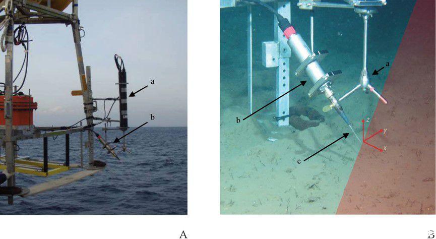 unisense渦動相關系統(tǒng)被用于測量深海沉積物中的氧氣攝取率。渦動相關系統(tǒng)的核心包括一個聲學多普勒測速儀(ADV)和一個快速響應的氧氣微電極,它們被直接安裝在一個放大器上。渦動系統(tǒng)上使用的是Clark型的氧氣微電極,具有內(nèi)部參考和保護陰極,外尖端直徑約為5微米,能夠在約0.2秒內(nèi)捕捉到氧氣濃度的突然變化。渦動相關組件被附加到一個自由下落的沉積物分析儀器上。在海底,遙控潛水器(ROV)將分析儀器定位,使渦動相關儀器指向水流方向。渦動相關數(shù)據(jù)通過將8赫茲數(shù)據(jù)降采樣到1赫茲來減少噪聲,并計算每個數(shù)據(jù)記錄周期的垂直渦動通量。