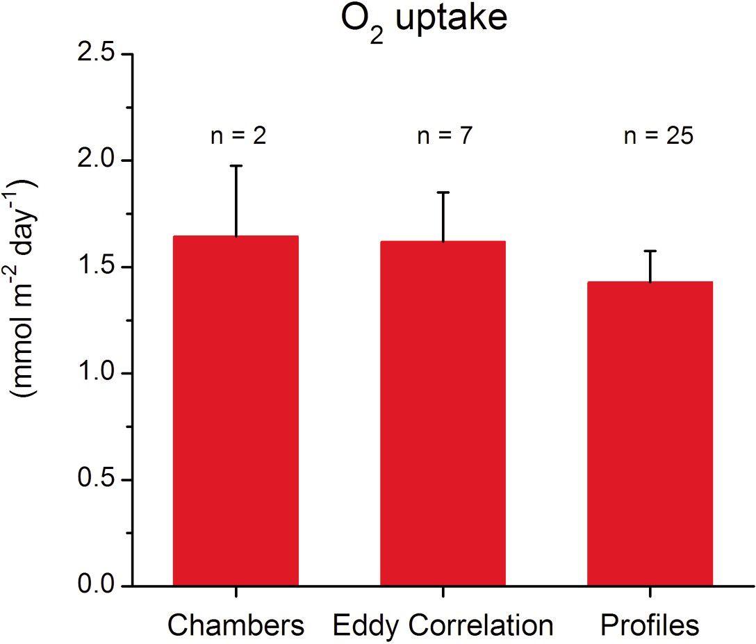 圖5、使用原位室、渦旋相關技術以及垂直沉積物剖面確定的平均O2通量