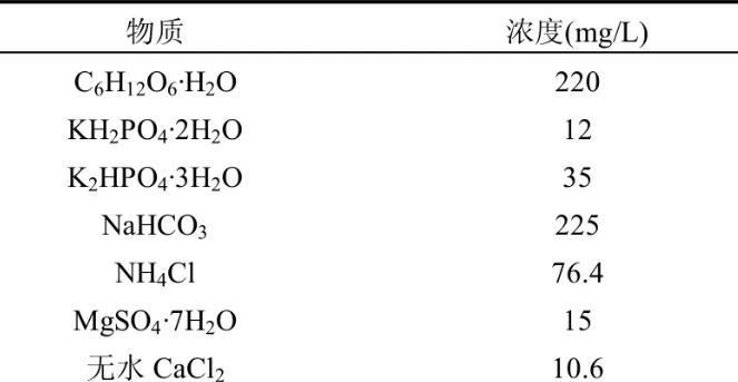實(shí)驗(yàn)采用人工配水,配方見(jiàn)表1.為了更好的模擬真實(shí)廢水中的情況,配水中還加入了生物膜生長(zhǎng)所需的微量元素。