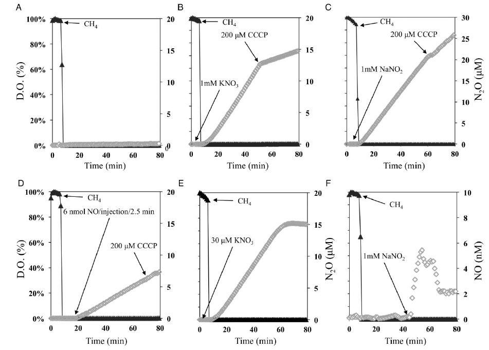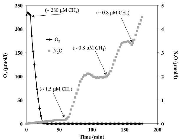 圖2、孔隙水化學(xué)隨MAT的變化。孔隙水在MAT周圍0至2 cm處取樣。MAT設(shè)置在~8 cm土壤深度,密度和空氣壓力分別為0.2 m2管外表面/m2土壤和25 kPa。Eh是相對于Ag/AgCl參比電極。