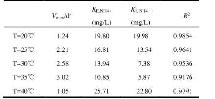 表2不同溫度下NH4+降解酶動力學參數(shù)