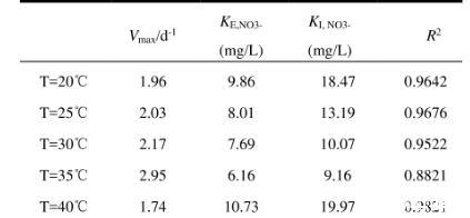 表1不同溫度下NO3-降解酶動力學參數(shù)