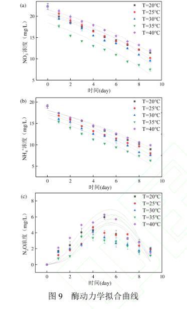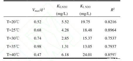綜上所述,動力學模型可以很好地預測系統(tǒng)在不同溫度下N2O排放情況,根據(jù)酶動力學擬合結(jié)果推測出N2O排放量最少的溫度條件為35℃,在此溫度下該系統(tǒng)可以最大程度地實現(xiàn)N2O減排。