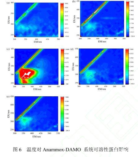 圖6溫度對Anammox-DAMO系統(tǒng)可溶性蛋白影響