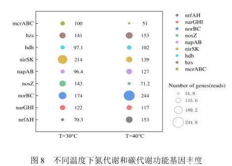 圖8不同溫度下氮代謝和碳代謝功能基因豐度