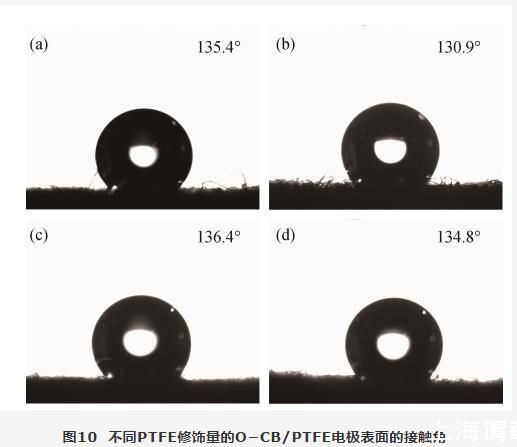圖10不同PTFE修飾量的O?CB/PTFE電極表面的接觸角