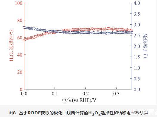 圖8基于RRDE獲取的極化曲線所計算的H2O2選擇性和轉移電子數結果