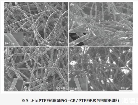 圖9不同PTFE修飾量的O–CB/PTFE電極的掃描電鏡圖