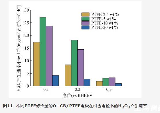 圖11不同PTFE修飾量的O?CB/PTFE電極在相應電位下的H2O2產生速率