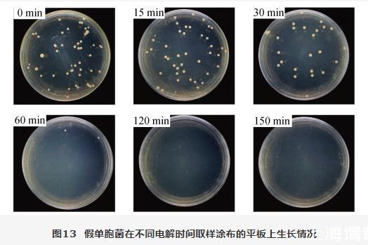圖13假單胞菌在不同電解時間取樣涂布的平板上生長情況