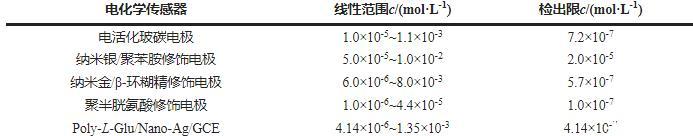 結果表明:本方法制備的Poly-L-Glu/Nano-Ag/GCE具有線性范圍寬及檢出限低的優點。