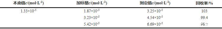 以3s/k(s為12次空白測定的標準偏差,k為線性回歸方程的斜率)計算檢出限,結果為4.14×10-7 mol·L-1。